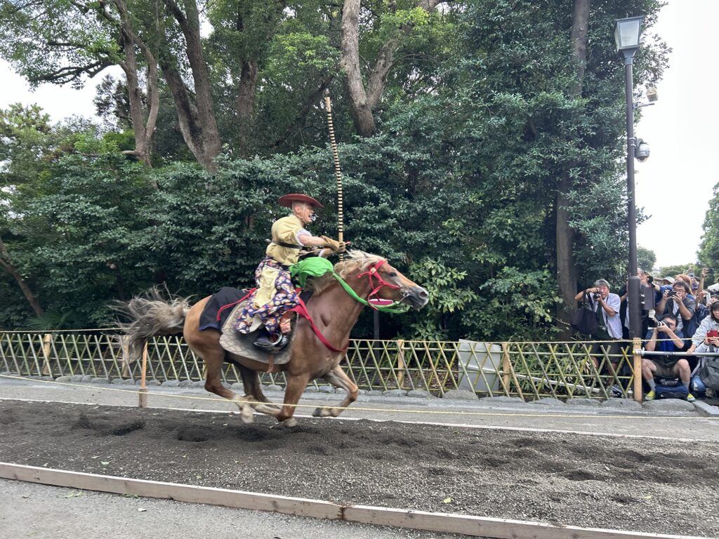 そのスピード感、『えーやー』という掛け声、馬の力強い蹄の音、矢を射る音、的の木を撃ち抜く鋭い音、そして馬の上で微動だにせず、姿勢良く、安定した体幹の美しさ。日々の鍛錬の賜物と強く感じました。