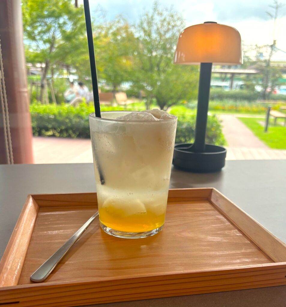 最後にカフェで加賀梨のクリームソーダを食べました。